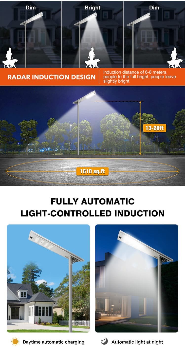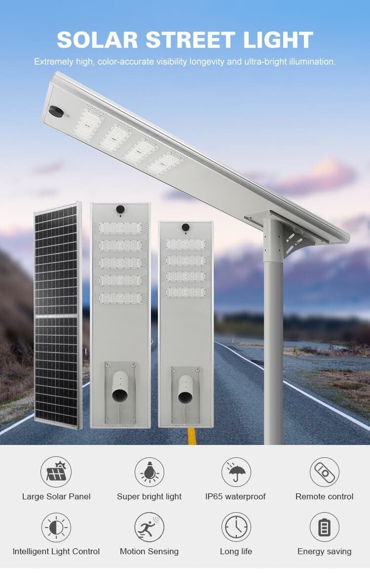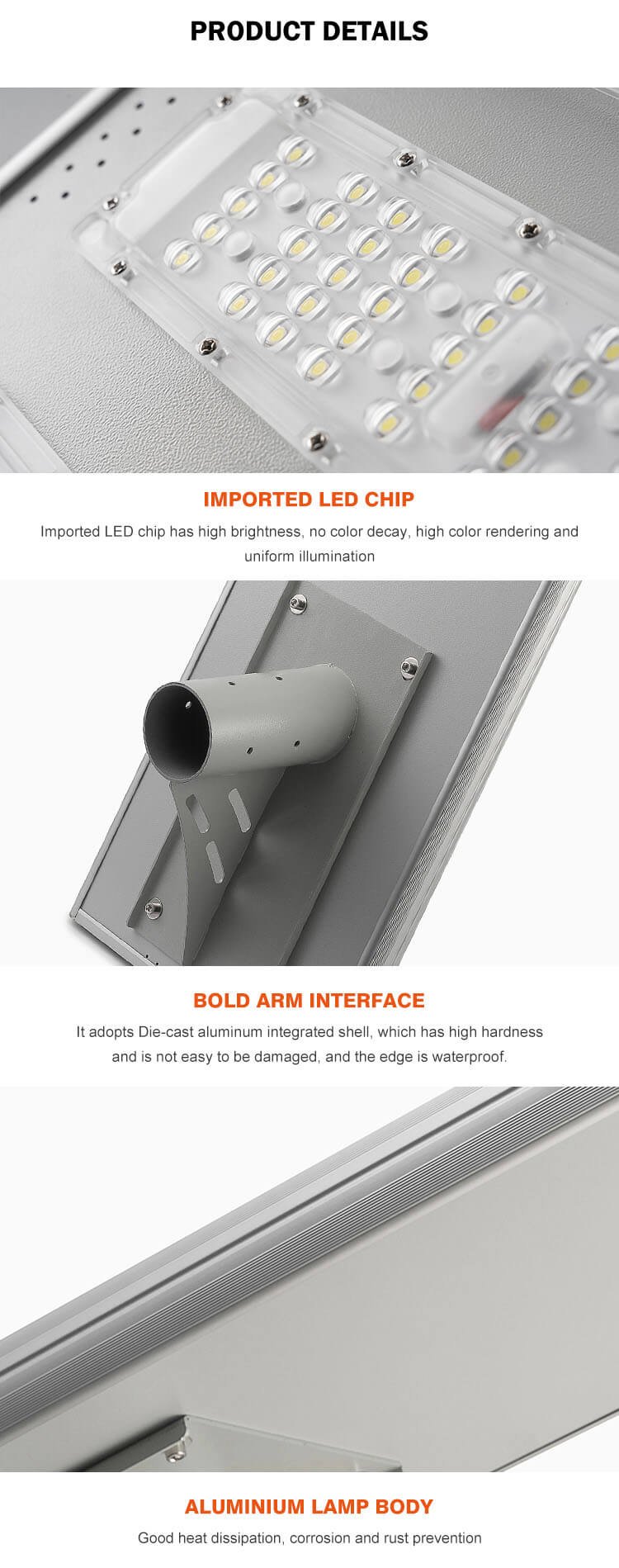 30W-120W integrated solar street light is compared to the split solar street light. Simply put, it integrates the battery, controller, and LED light source into one lamp head, and then configures the battery board, lamp pole or cantilever arm.